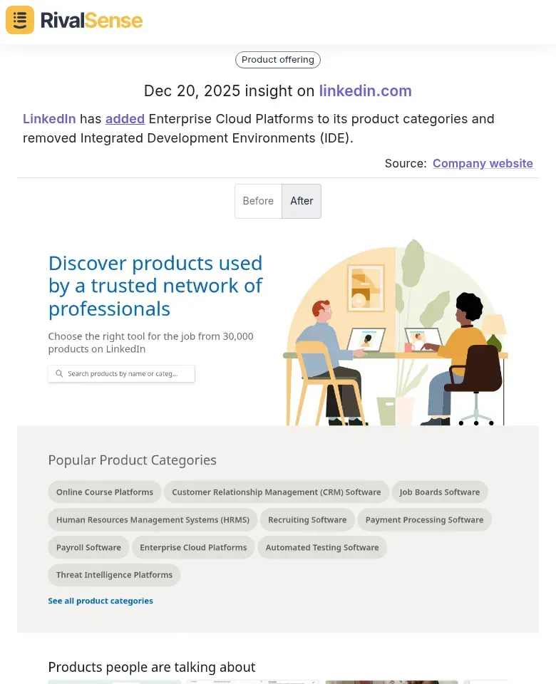 ![LinkedIn has added Enterprise Cloud Platforms to its product categories and removed Integrated Development Environments (https://rivalsense.co/intel/content/images/2026/01/NimXxXmCngOuNeM6pZSKmg.png)