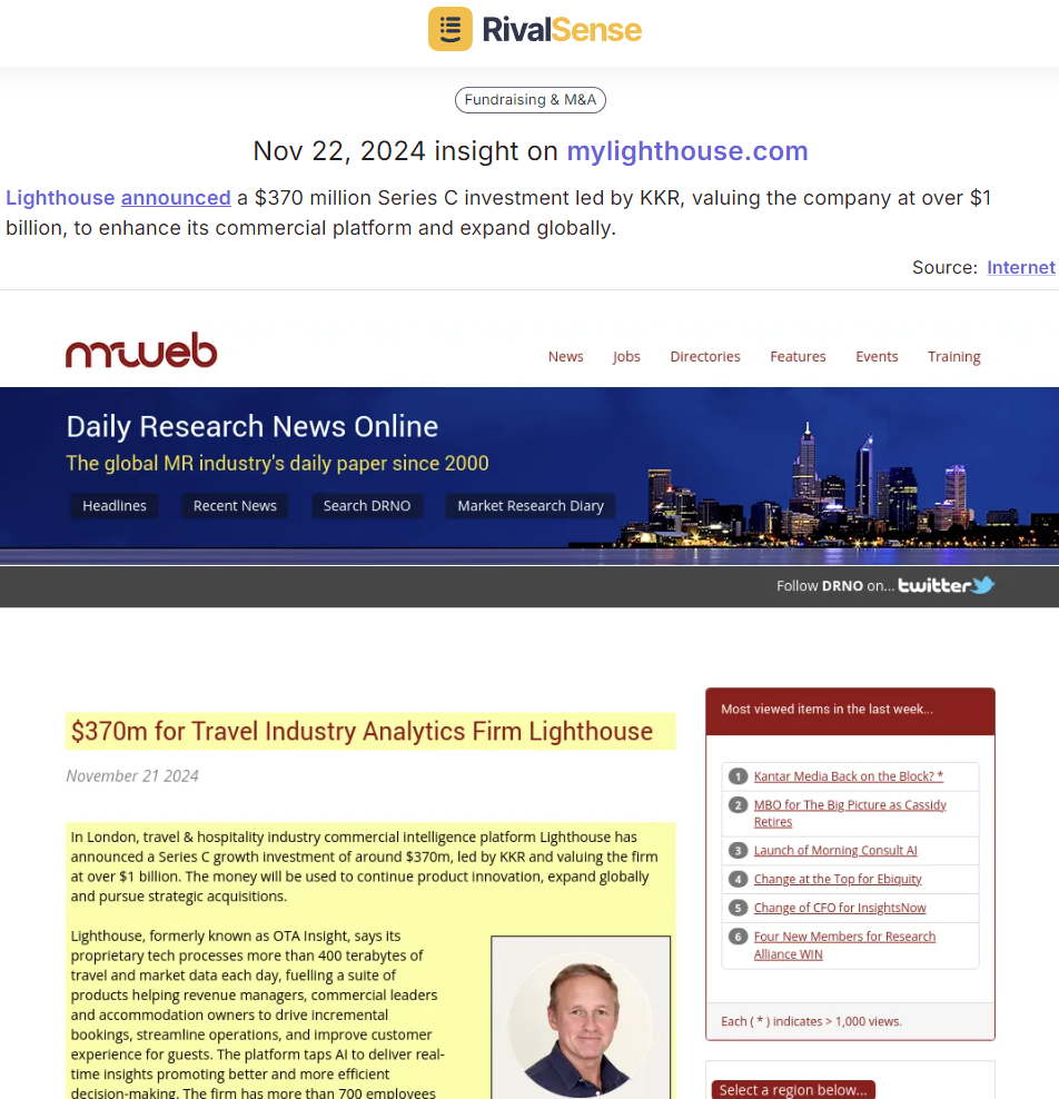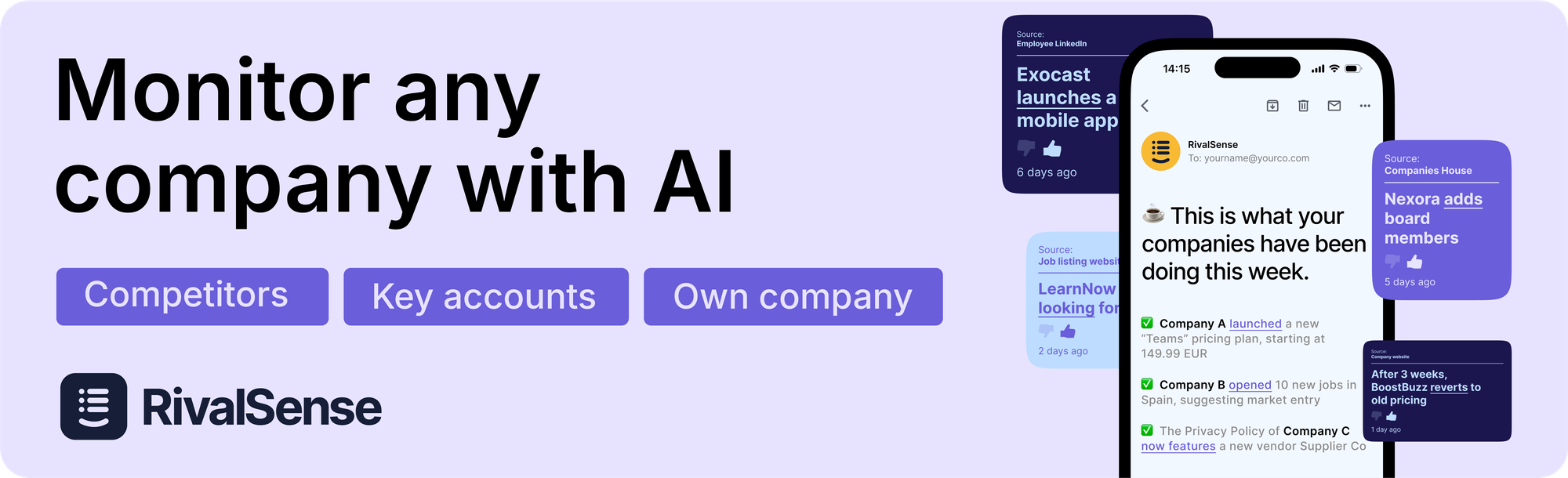 RivalSense keeps you informed about market trends, competitor activities, and your clients' product roadmaps. These insights empower you to anticipate your clients’ needs and position yourself as an indispensable partner.